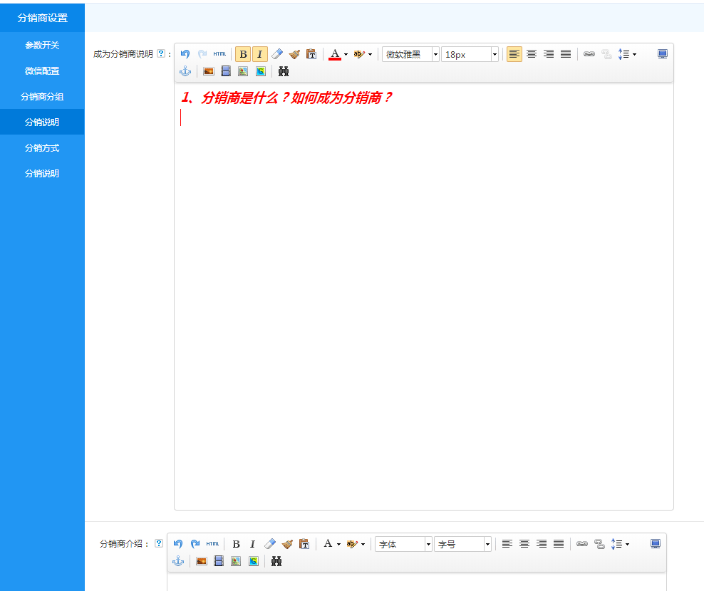 在分销商设置中设置分销商相关的介绍文档,教导会员学习分销商相关的功能