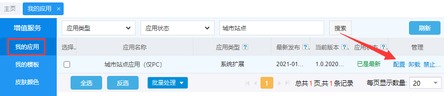 4. 城市站点应用仅从【我的应用】配置,导航菜单上不放置入口