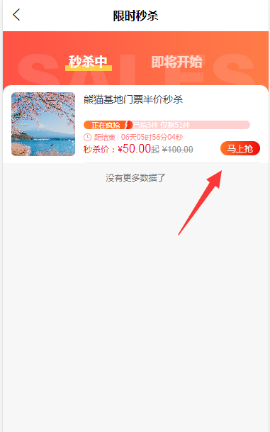 栏目页显示:秒杀中的产品活动 和 即将开始的产品活动。