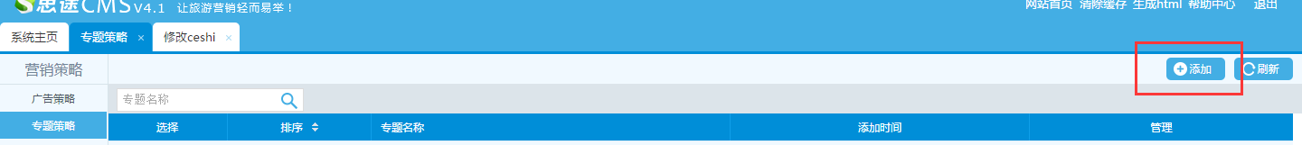 点击保存按钮生成专题,在后台点击专题跳转到前台,获得专题链接