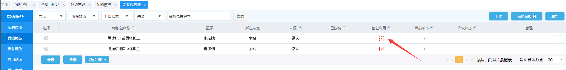 点击安装包管理,选择购买的模板点击应用