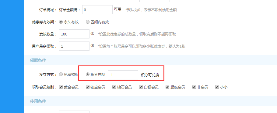点击“优惠券管理”页面的“添加”按钮,进入“添加优惠券”页面。