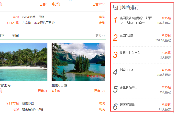 191号首页模板右侧的线路排行,是按后台的所有线路的数字从小到大排序来的,取前6条信息展示。