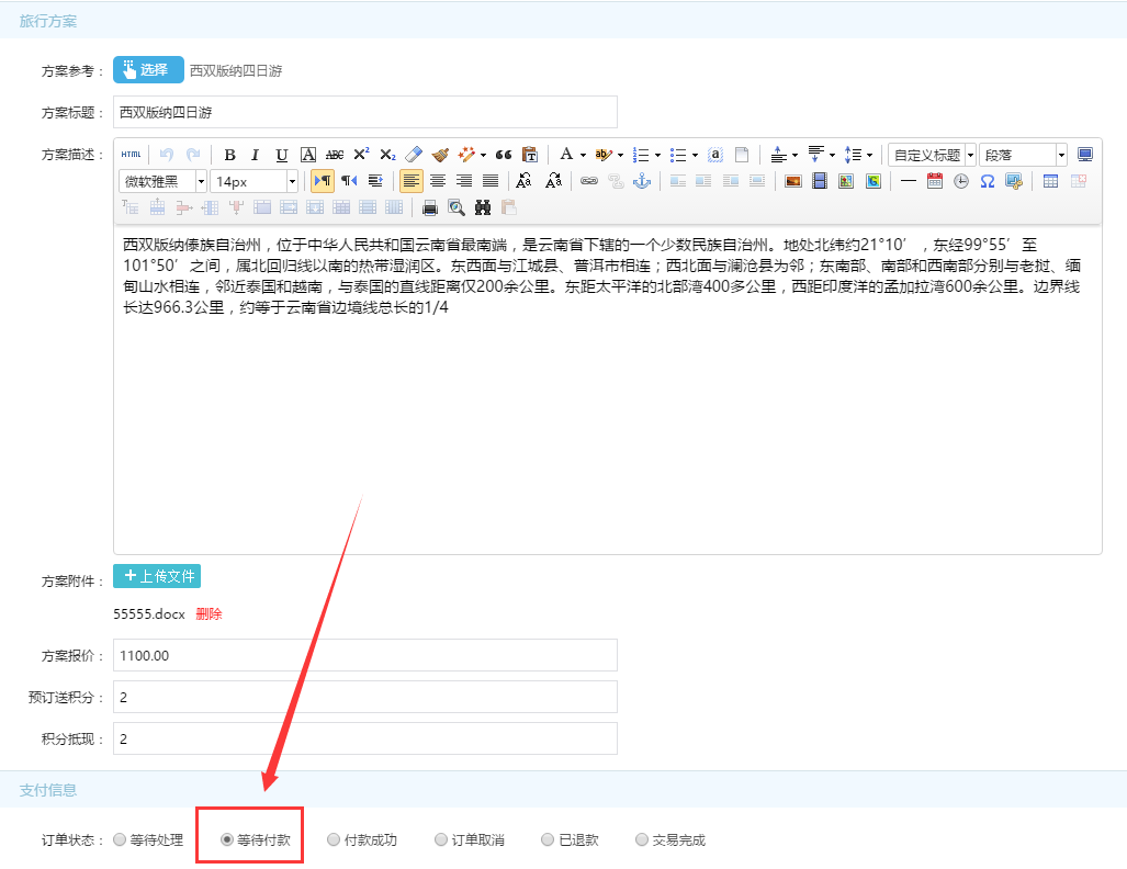 2、旅行计划:包括目的地、出发地、出发日期、天数、人数和属性