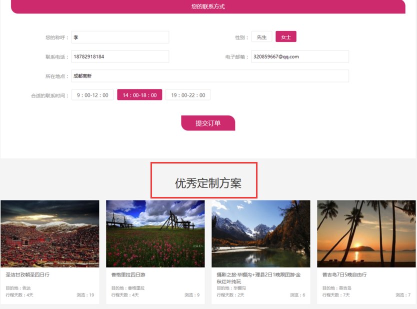 3、方案添加成功后在私人定制首页下方“优秀方案”处展示