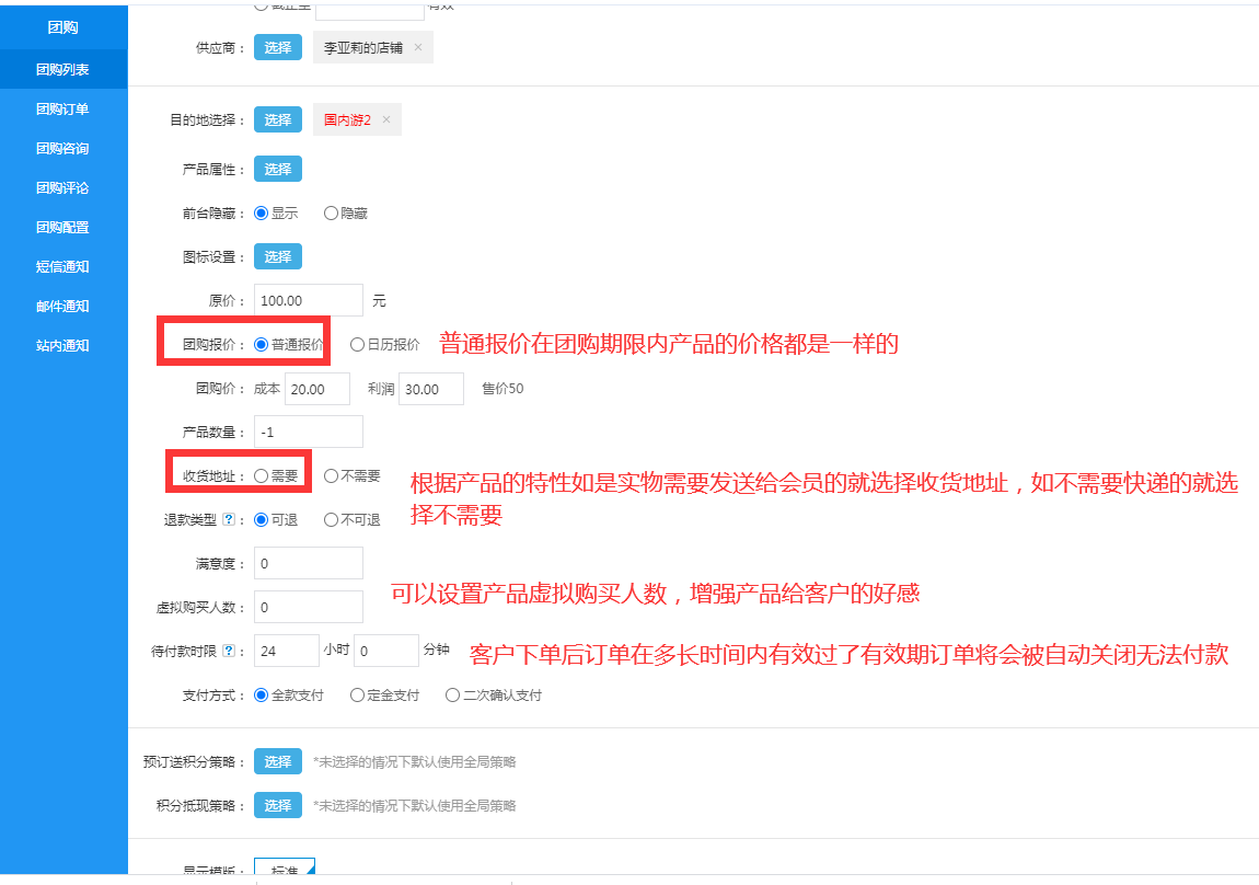 团购价格设置:团购价格设置有两种方式:一、普通报价 二、日历报价