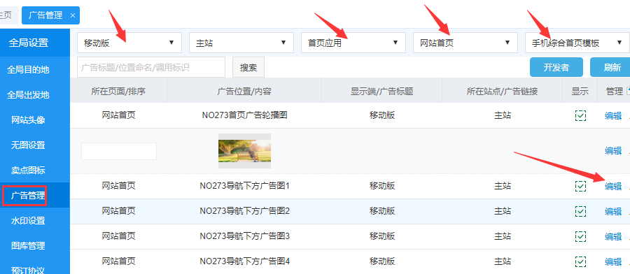 重点说明:这个版块一共有4个广告位,每个广告位的图片尺寸都不一样,请按照广告位里的尺寸上传图片