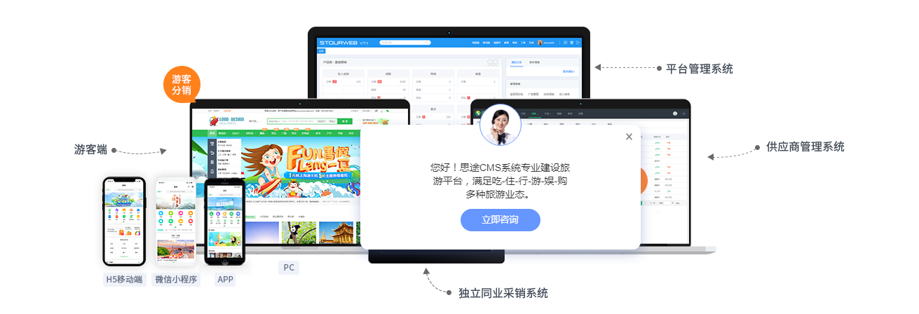 思途智旅旅游电商系统,专为涉旅企业搭建旅游电商平台,系统功能强大,支持B2BC/B2B/B2B2C等旅游业务模式。