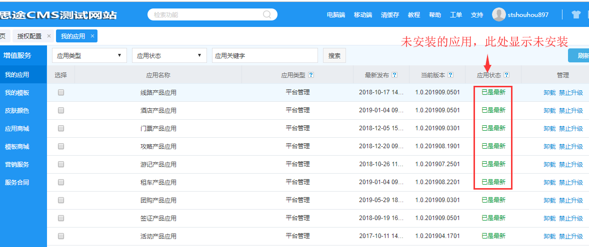 思途cms基于基础架构之上,所有的应用都是模块化的,您购买了哪些应用,需要在我的应用安装并升级最新。